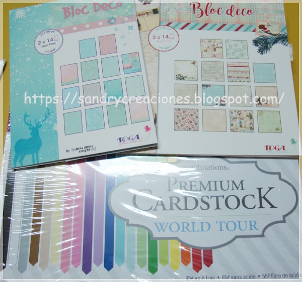 Para confeccionarla utilizamos cartulinas "Premium Cardstock - World Tour" y mayoritariamente los papeles del "Kit Papeles estampados 12x12 Feliz Navidad" de "Anita y su mundo" del que nos enamoraron sus motivos navideños. Así como colecciones de papeles scrap de Navidad de "Toga" que ya disponíamos.