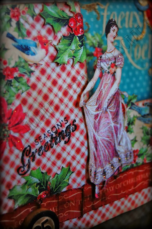 Estampé algunos sellos y le di unos toques con Stickles color rojo y con Stickles color diamond. Una de las estampaciones la embossé con polvos dorados.