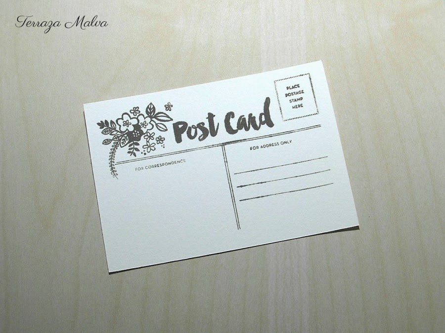 He utilizado papel de acuarela como base con un tamaño aproximado de 14,5 x 10,5. Esta medida es la que uso en mis postales porque por la parte trasera utilizo casi siempre un sello de Amy Tangerine que evoca la impresión de una postal antigua.