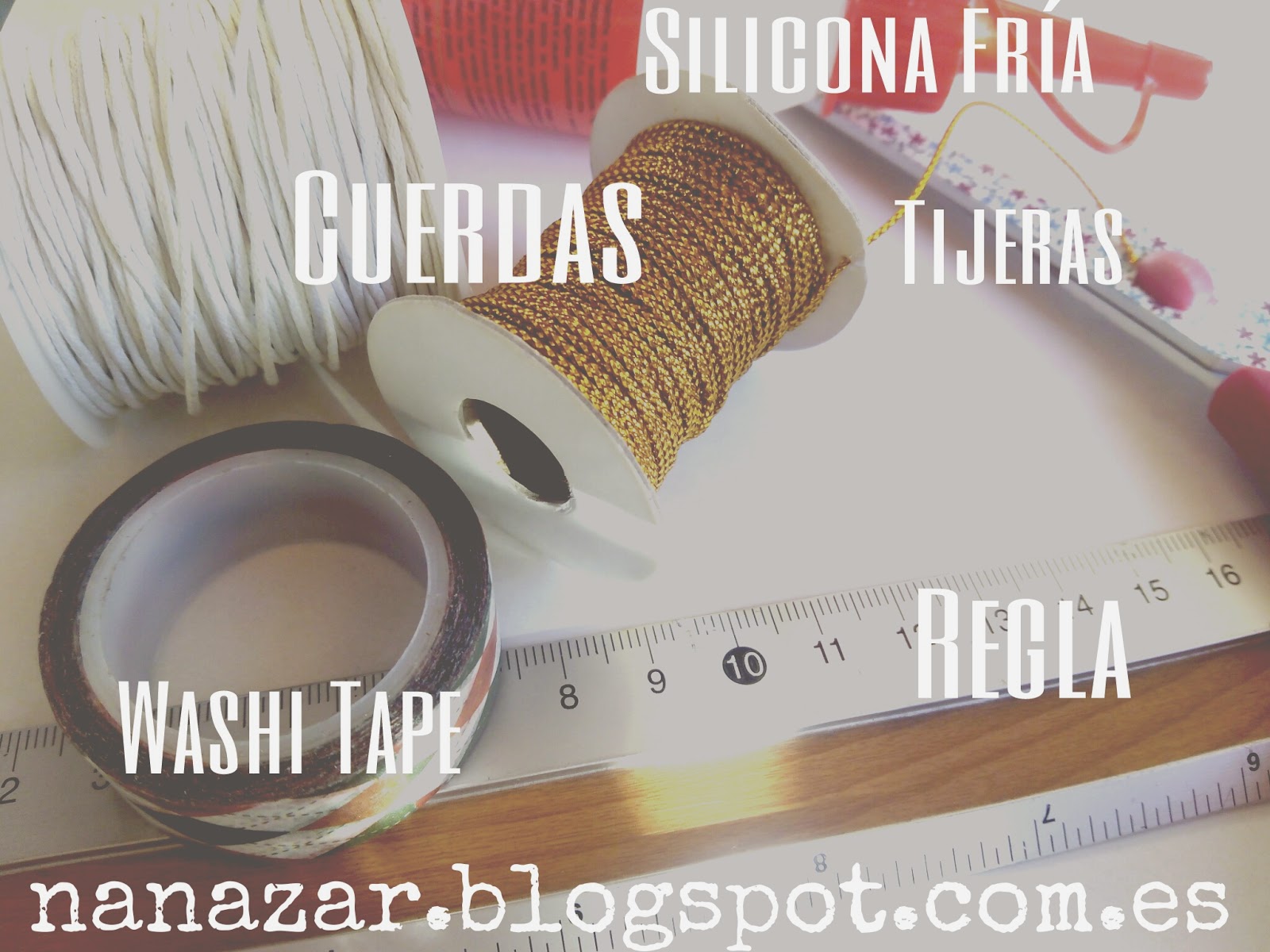 ¿Los materiales? Coge todo lo que tengas por casa y deja volar la imaginación. Cualquier washi tape con colores rojos o verdes (No hace falta que sea con motivos navideños), cualquier trozo de tela colorida, cuerdas, cordones, hilos y cartulina, sobre todo cartulina, ya que será nuestra base.