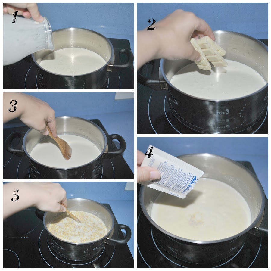 2.- Agregamos el chocolate blanco para que se deshaga.