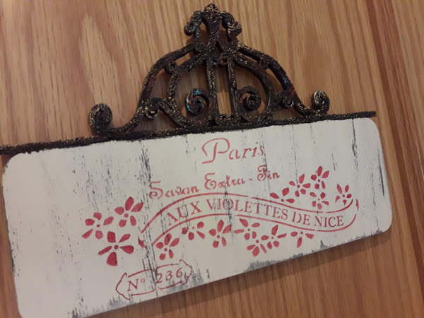 Cartel para el aseo con stencils, envejecido con chalk paint y foam paint
