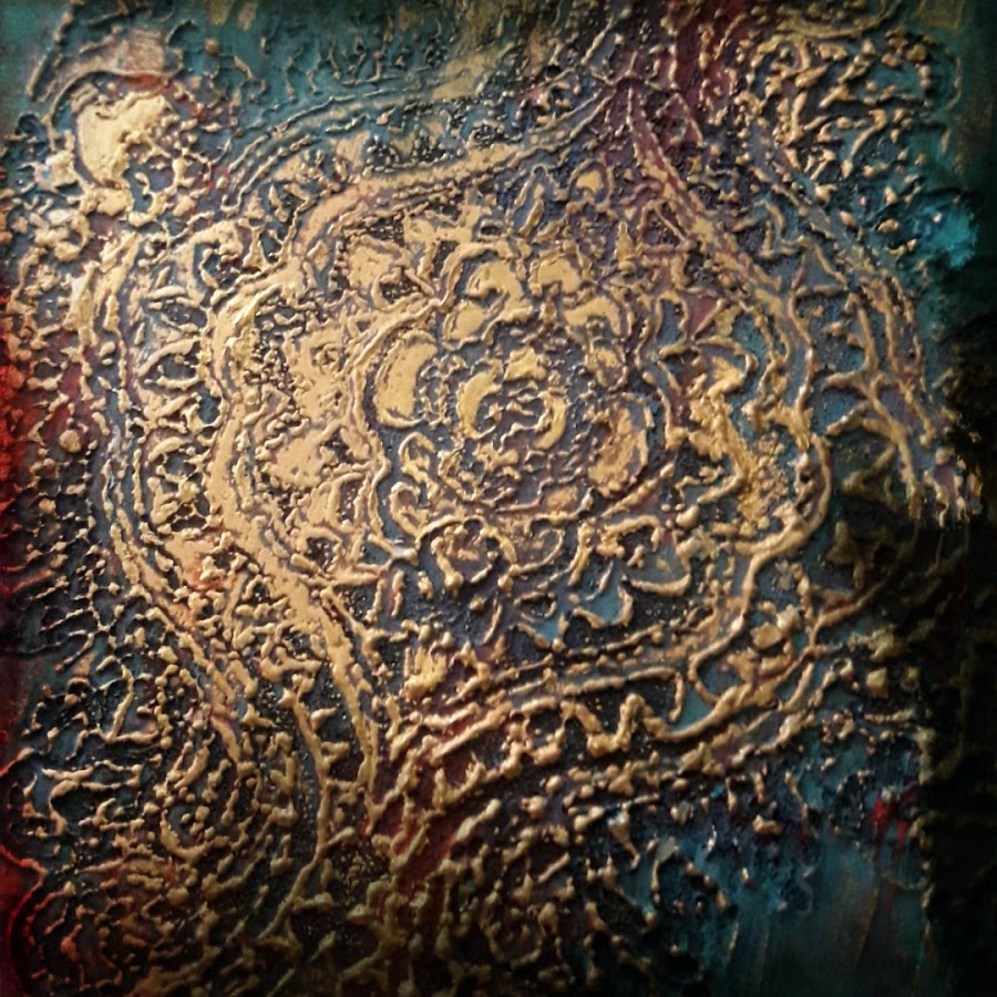 Textura para esta portada de art journal con sellos y pasta de stencil