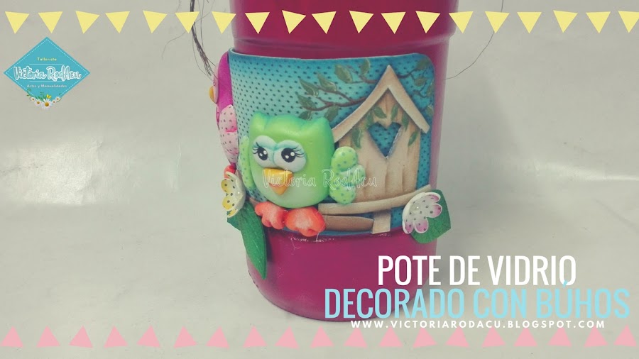En este proyecto he decidido decorar mi pote de vidrio con unos tiernos búhos elaborados con termoformas de resina Kawaii Kryz que le dan un toque hermoso.