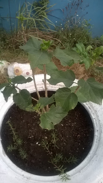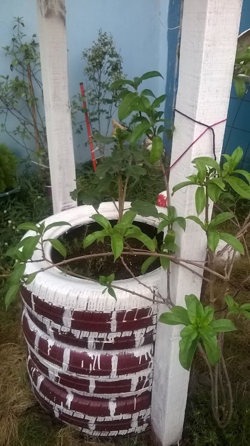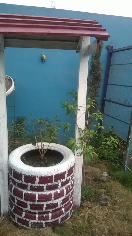 Espero que algún día tenga flores pero bueno no se puede pedir más esta chulo, reciclamos y embellecimos aun más el jardín.