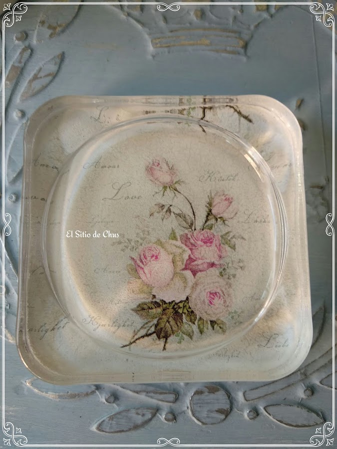 Ya veis lo sencillo que era, pero después de un decoupage con una servilleta muy fina y unas capas de pintura blanca quedó así.