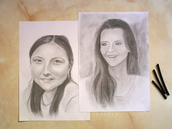 Como ven son rostros femeninos, siempre hago una práctica-estudio al carbón antes de pintar.