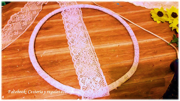 Forramos con alguna tela bonita que tengas, alguna vieja cortina de encaje, o mantel o una prenda de vestir que ya no uses...