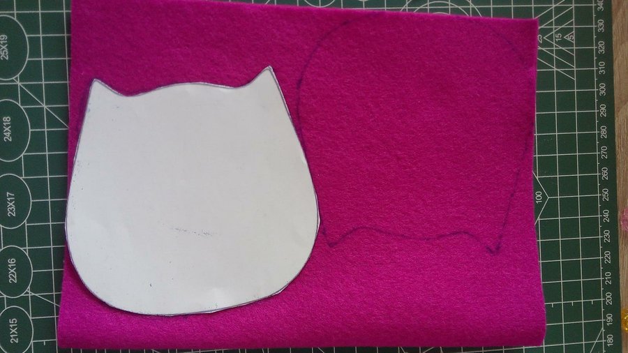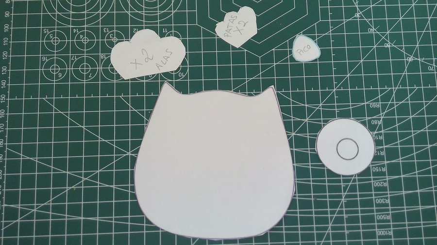 Con el patrón dibujamos dos partes para el cuerpo, dos ojos, dos circulitos negros, un pico, dos alitas y un corazón