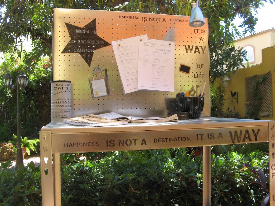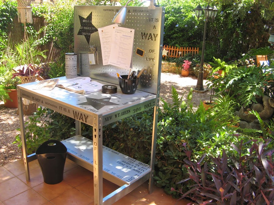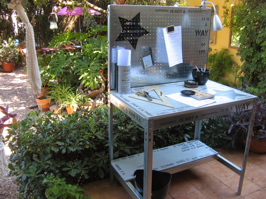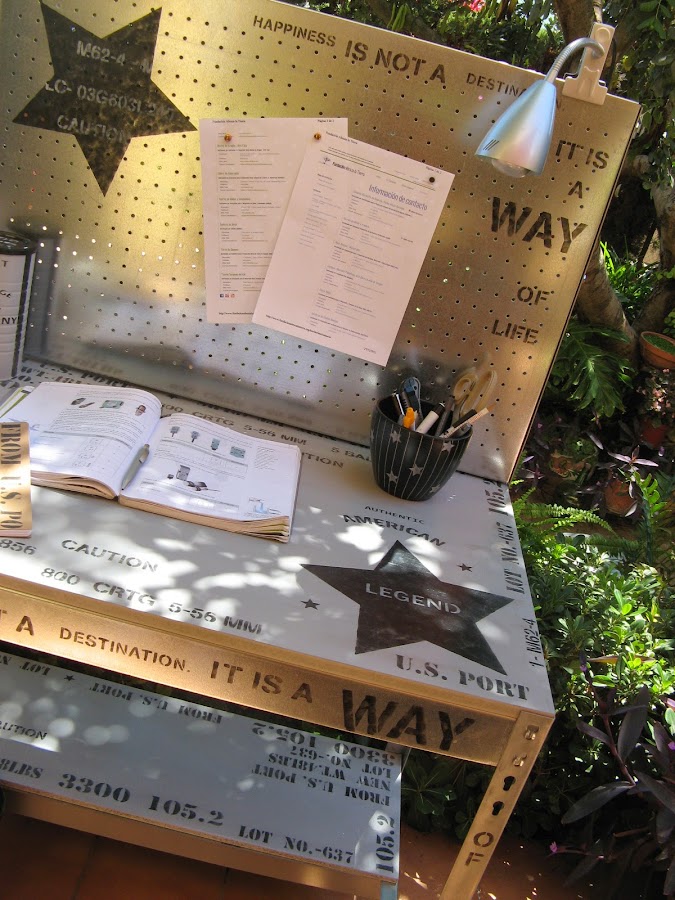 Casi a la vez a mi hijo Sergio se le acabó de romper la mesa que tiene en su habitación....total.....que me vino la idea de convertir el banco de trabajo en su nuevo escritorio.....a pesar de sus "peros" porque él no lo visualizaba nada de nada, me puse a ello.