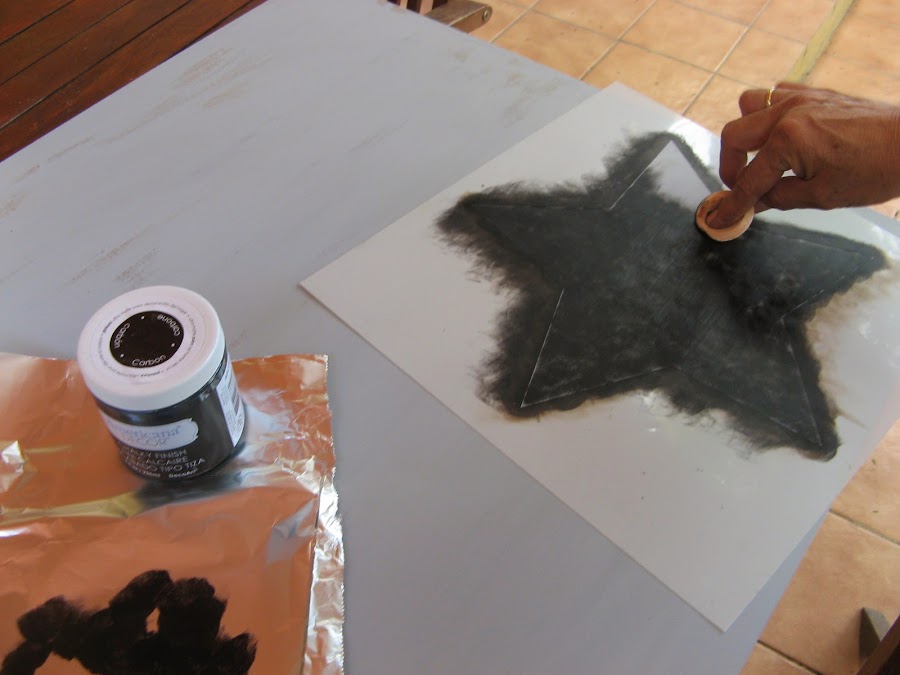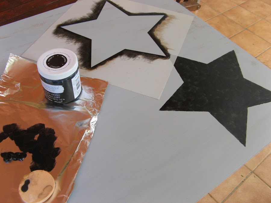 He utilizado para los estarcidos el tono carbón de las Chalky. Se pueden usar para estarcir como si fuera una acrilica normal