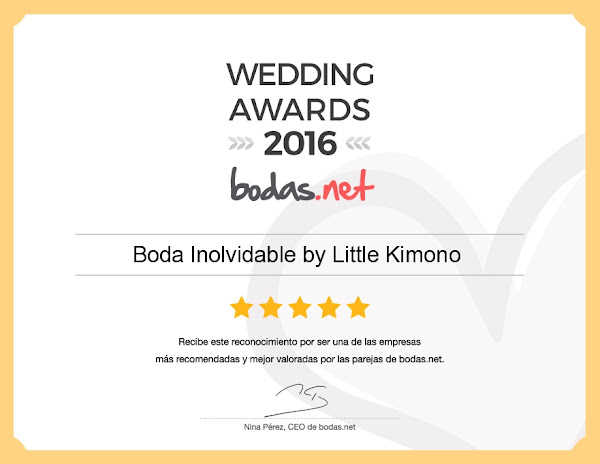 Hola!! Hoy he recibido la sorpresa que Boda Inolvidable by Little Kimono ha obtenido un premio del Wedding Awards 2016 en la categoría "Detalles de Boda" que organiza Bodas.net ◠‿◠
