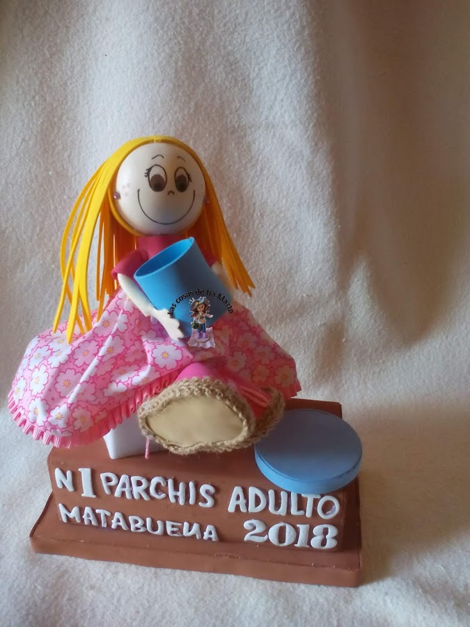 Aquí os dejo con el primer premio de parchís en la categoría de adultos. ¿Quién no ha jugado en alguna vez?. Su ganadora fué Carmen.
