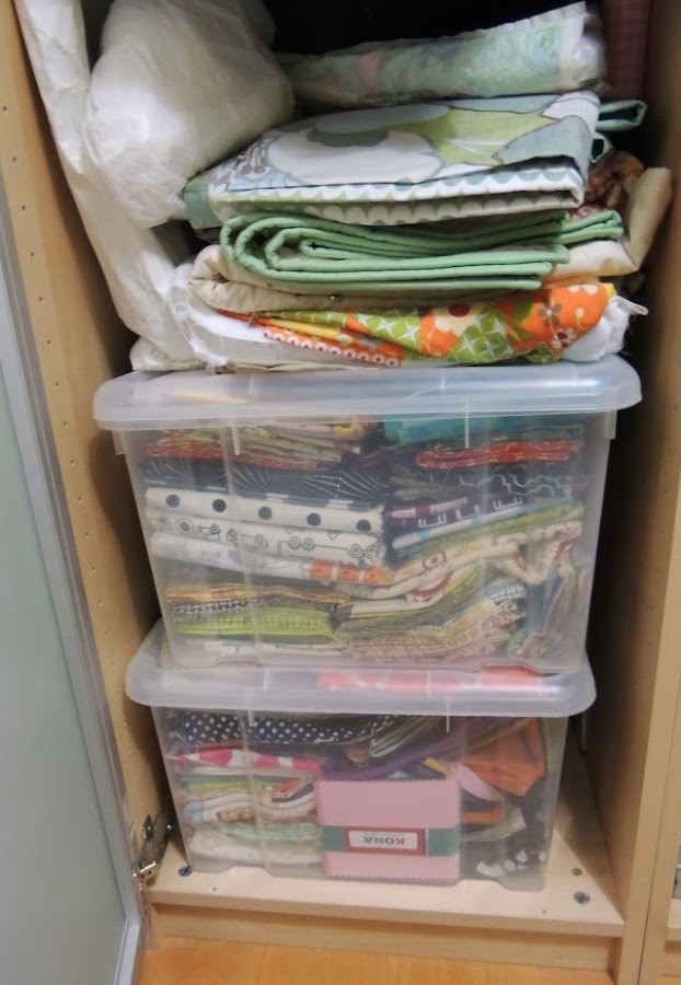 Ahora hablamos un poquito sobre unos de mis temas favoritos, las telas. Lo que me pasa con ellas es amor, adicción, locura, llamarlo como queráis. Estoy al día de las colecciones de telas que salen en cada temporada y tengo mis diseñadores fetiches, ya he hablado algunas veces de ellos, Robert Kaufman y Michael Miller. Hoy os dejos dos fotos de mis telas para que veáis que no os miento. (Hay dos filas).