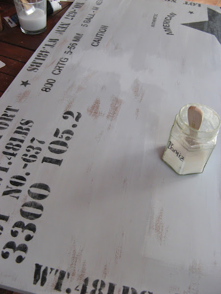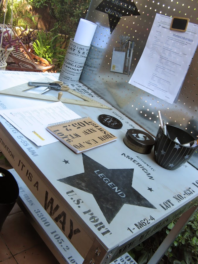 Después de hacer los estarcidos, todo bien lijado para desgastar un poco el color negro