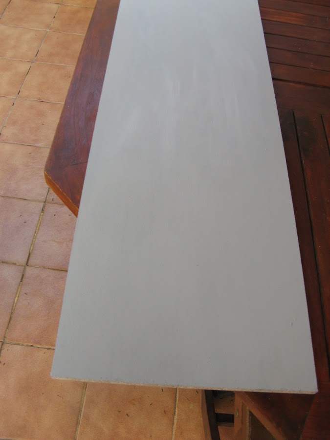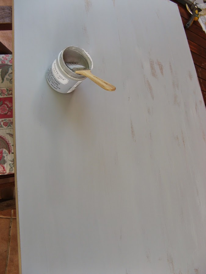 Una pasadita estirando mucho la pintura y sin cubrir del todo la madera para que desde el principio quedara con aspecto decapado