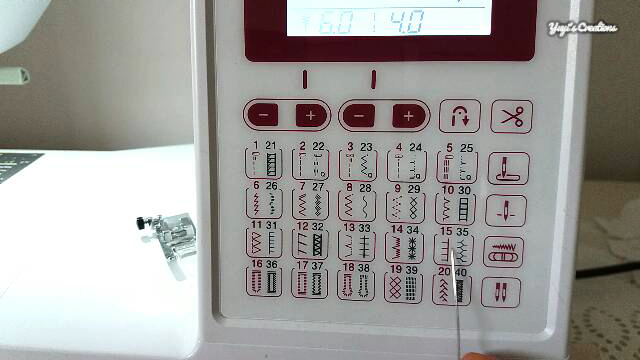 Antes de empezar a coser debes regular la aguja de forma que el ancho de la puntada te cubra bien los hilos. Para tres hilos yo uso un zigzag de 5.5 ó 6 de ancho y 4 de largo, pero esto dependerá también de tu máquina y de la puntada que vayas a utilizar.