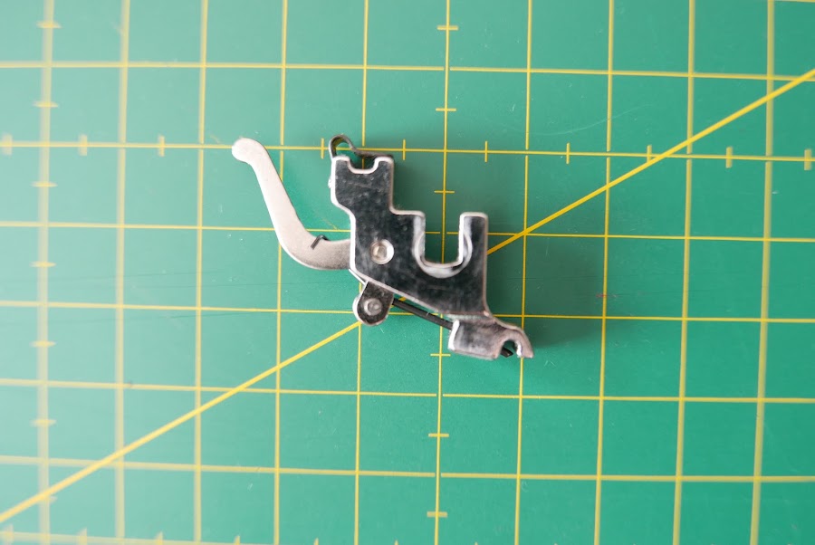 Prensatelas de dobla arrastre, que utilizo en el vídeo, se adapta a mi máquina de caña baja, sólo que he de quitar el adaptador ( el proceso de ponerlo puedes verlo en el vídeo final de este post)