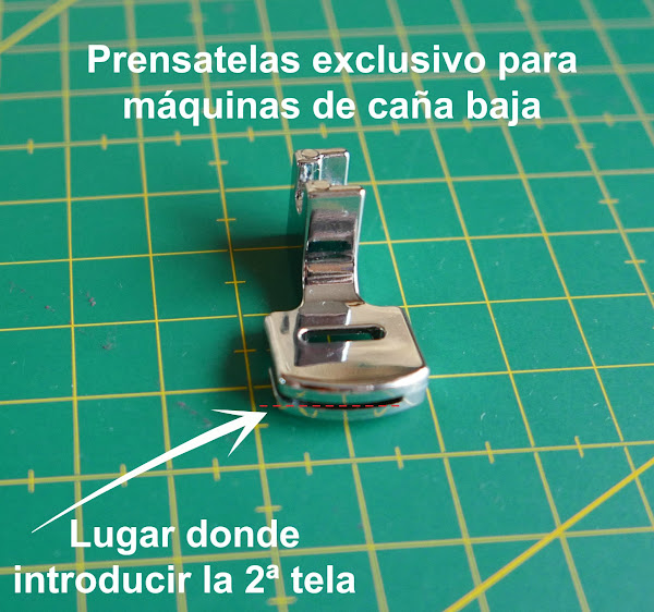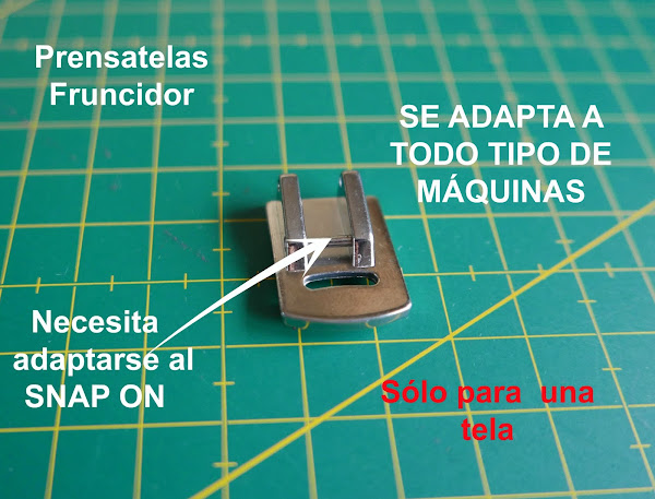 El segundo prensatelas ya viene con caña, se adapta directamente a la máquina y como novedad respecto al primero, nos permite incorporar un segundo tejido, con lo que además de fruncir, que es lo que vamos a ver hoy, también podremos unir a la vez la tela a la que vamos a coser el fruncido. Vamos ¡todo de una pasada! Esta segunda parte la veremos la semana que viene. Hoy de momento, vamos a empezar a fruncir con él.