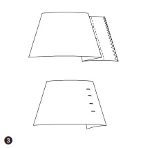 Doblamos el tejido como se muestra en la figura uno. Coloque el pliegue con la anchura como desee para la costura acabada, el pliegue inferior debe quedar 5 mm aprx. hacia atrás.