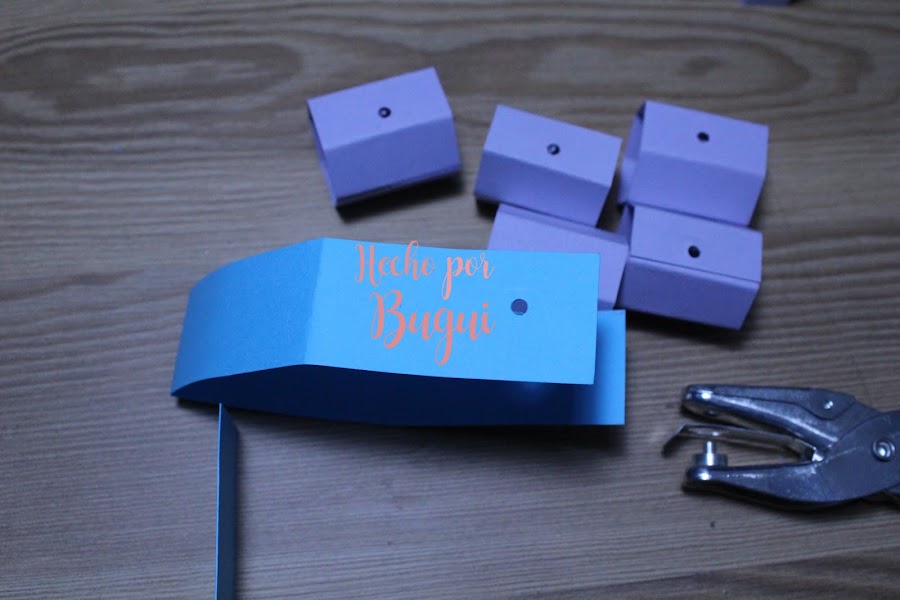 Hacemos los agujeros, tanto en las cartulinas de colores (bombillas) como en la cartulina gris (casquillo), intenta que queden centrados y a la misma altura.