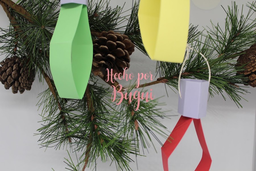 Para dar forma a las bombillas doblaremos por la mitad y después cada lado de nuevo por la mitad pero hacia dentro.