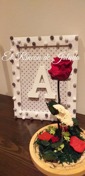 Este cuadro lo he decorado con tela de topitos ( a juego con su dormitorio)y