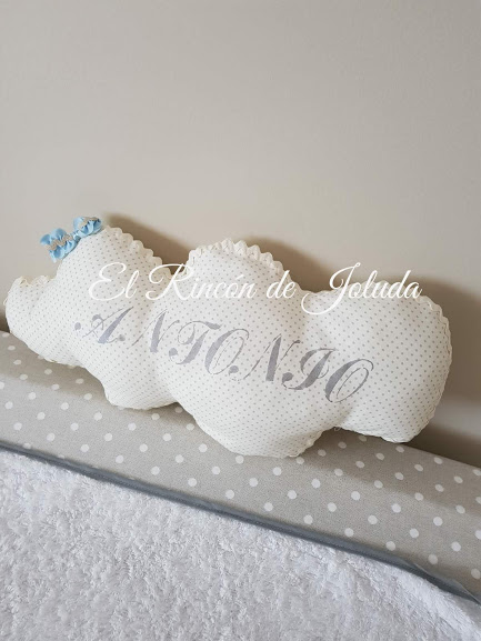 Lo primero que hice, fué un cojín con su nombre, en forma de nube