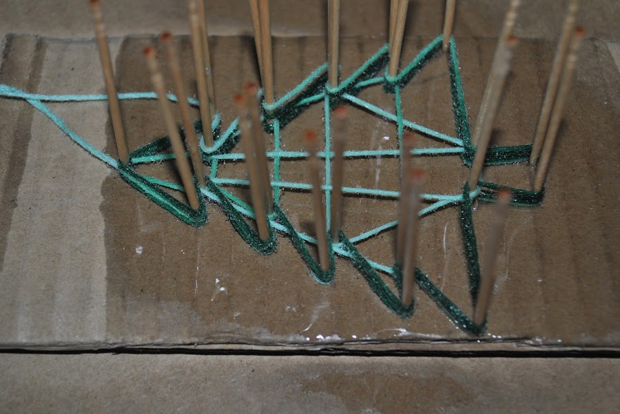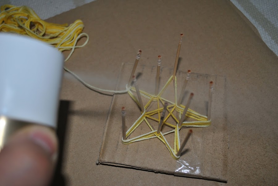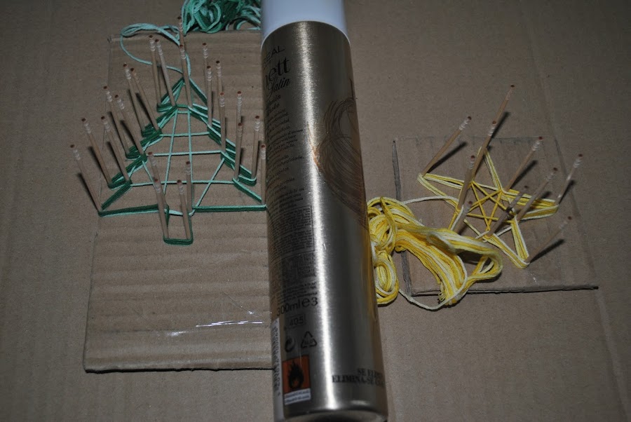 Antes de que se seque por completo retirad los palillos con cuidado, si no, se pegarán al hilo y después todo se os desbaratará.