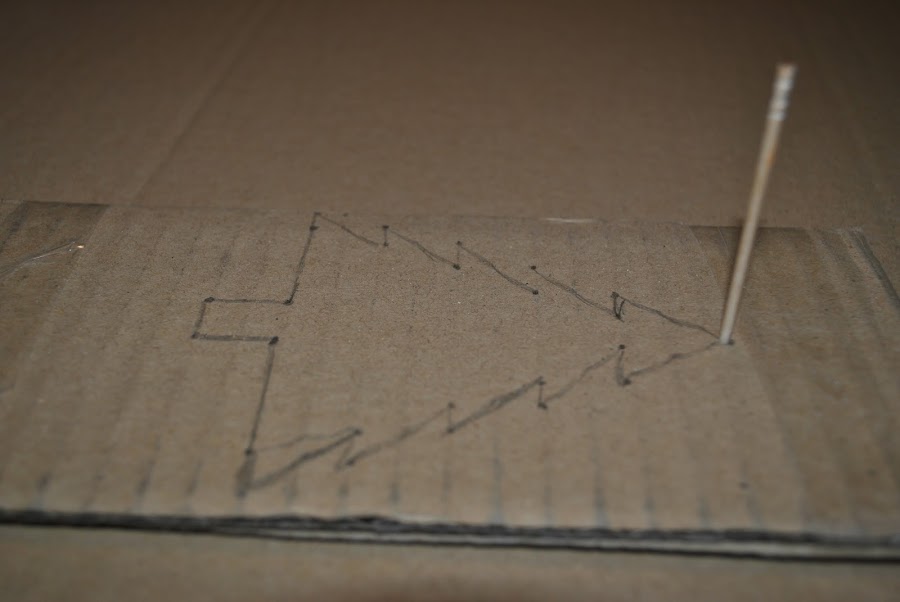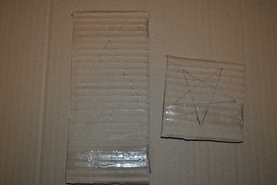 En primer lugar dibujamos el motivo con el que haremos nuestro adorno navideño. Un arbolito, una estrella, un corazón... lo que más nos guste. Y lo proyectamos sobre nuestro cartón. Yo tengo restos de cajas de cartón en casa y ya sabéis que lo voy aprovechando todo.