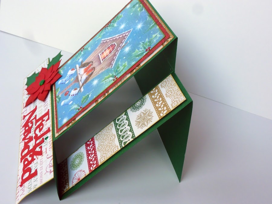Ésa tarjeta tiene una forma muy original, y queda abierta como si fuera un atril.