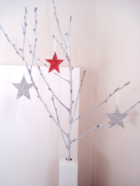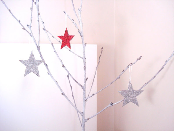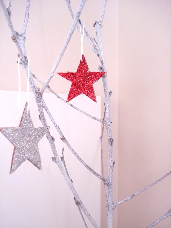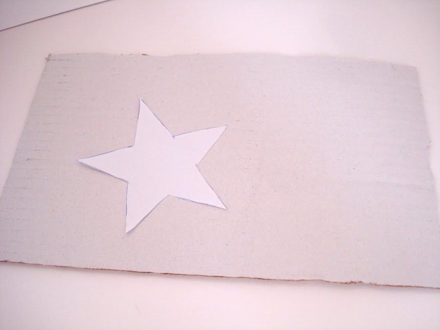 Cartón,cola blanca y purpurina para hacer unas estrella.
