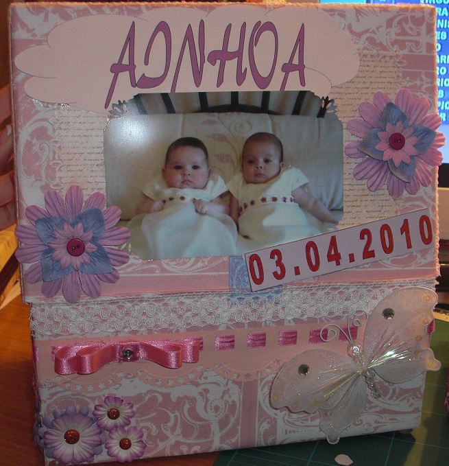 Mis inicios en el scrapbooking fueron gracias al nacimiento de mi prima Ainhoa, buscando una forma diferente de decorar un álbum de fotos fue cómo descubrí esta técnica. Ahora, éste, es mi segundo álbum, el de su bautizo. El álbum base utilizado es de KOLO, que estaba por casa desde hacía tiempo sin saber qué hacer con él.... Espero ...