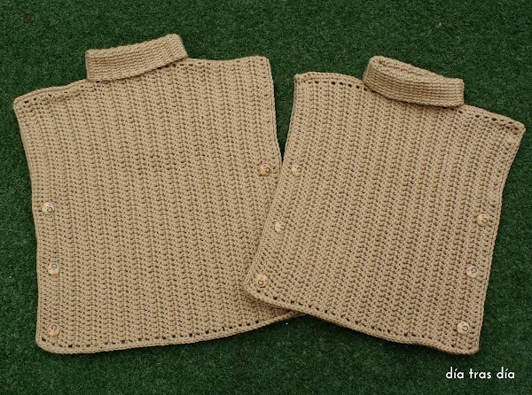 Así que para las sobrinas de Pilar he tejido estos dos ponchos, en el mismo color que el de Nadia, que es un color que combina estupendamente con todo, para los que he empleado otro tipo de punto, un poco más sencillo: