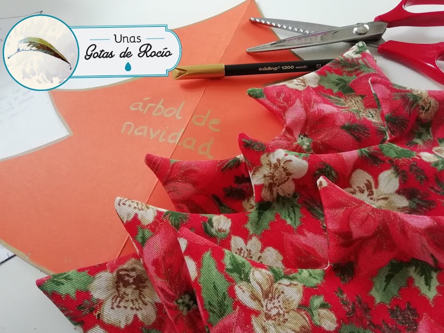 Parece que no es Navidad si no hago un arbolito con estampados de acebo y flor de pascua.