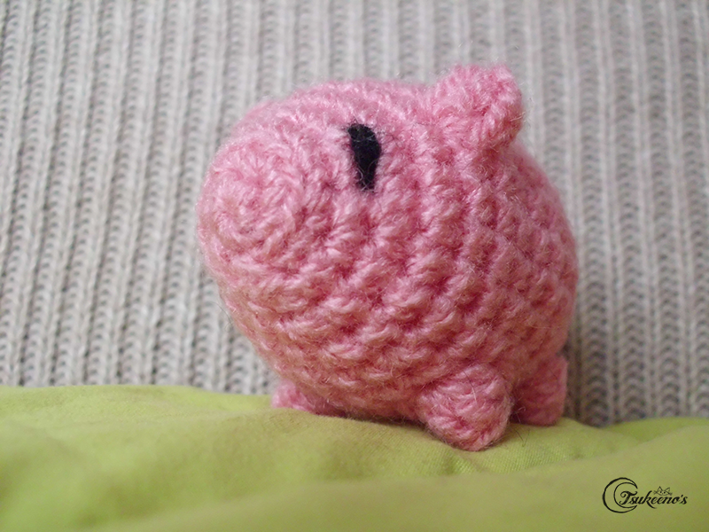 Además, este cerdito en concreto tiene un patrón muy continuado, en el que no hay que coser partes separadas (las patas y las orejas son puntos bodoque y el rabo se hace después de acabar el cuerpo, aunque yo sí lo he hecho separado porque no me acababa de quedar bien centrado).