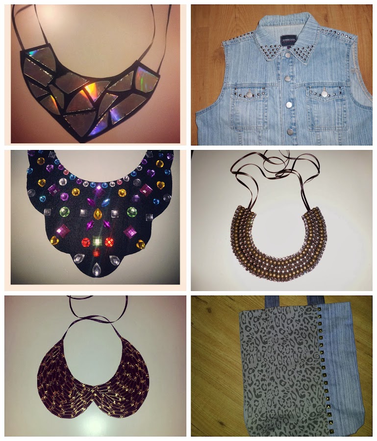 Realmente lo que más disfruto haciendo y como veréis en el Blog ,porque es lo que más destaca ,son los COLLARES BABERO Y también CUSTOMIZANDO ropa y demás con TACHUELAS,ABALORIOS,BISUTERIA entre otros.