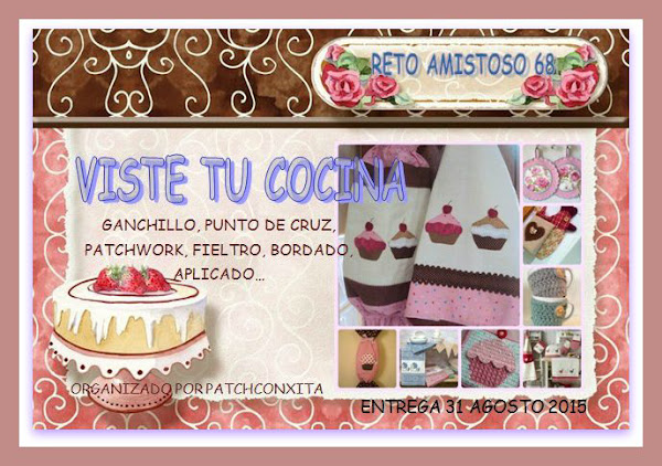 Bueno muchas ya lo sabéis pero yo lo voy a recalcar y hacer los honores que merece, la nueva organizadora del reto es Conchita del blog. http://patchconxita.blogspot.com.es/