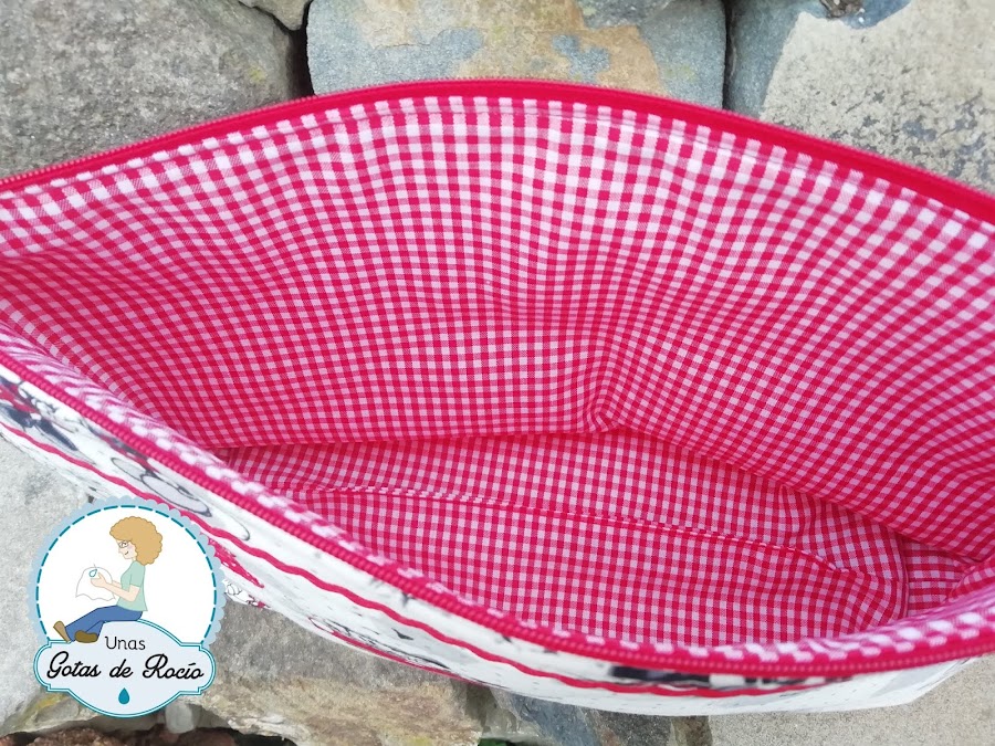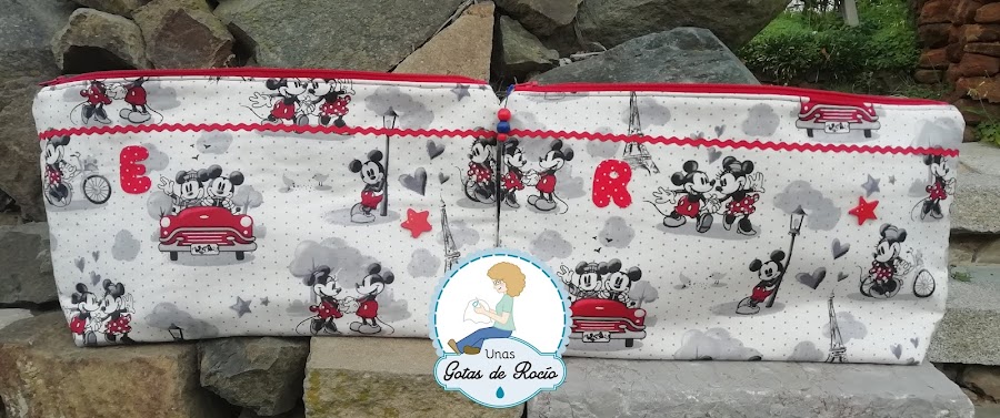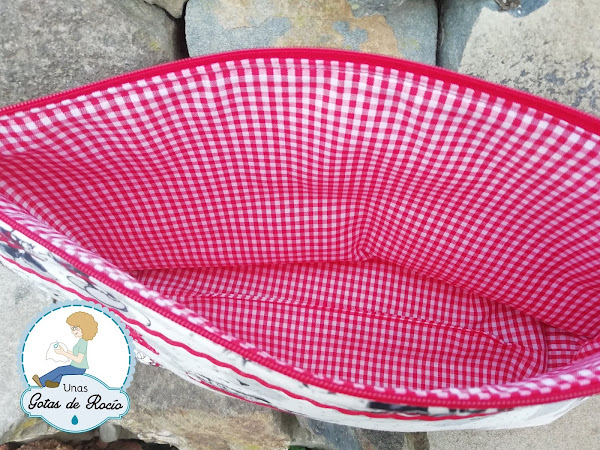 Cada conjunto incorpora un neceser de gran tamaño, con inicial identificativa y forro en vichy rojo. La foto me ha quedado extraña, parece un único neceser muy largo, pero en realidad son dos. Eso me pasa por hacerlos exactamente igual jajaja.