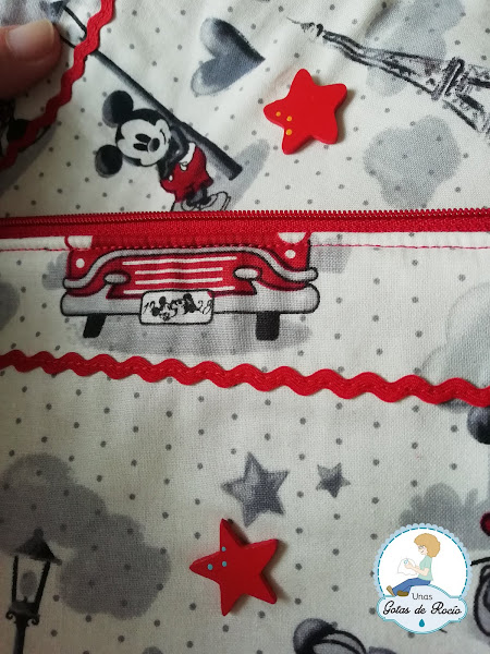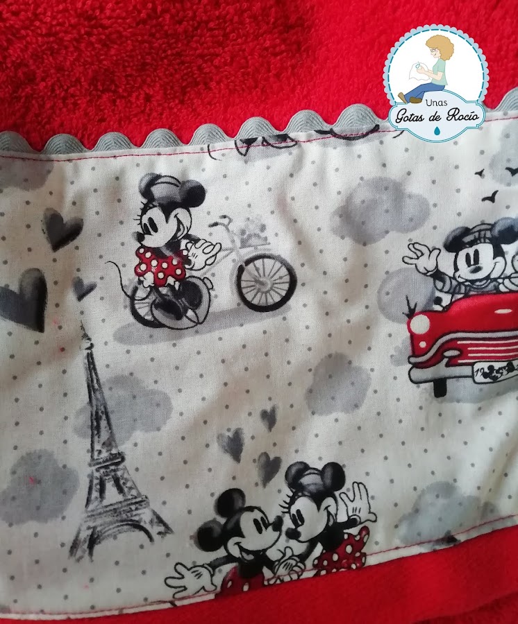 En esta ocasión la tela escogida es un precioso estampado parisino con Mickey y Minnie como protagonistas. No costó mucho elegirla, Emma y Rocío están completamente enamoradas de Minnie.