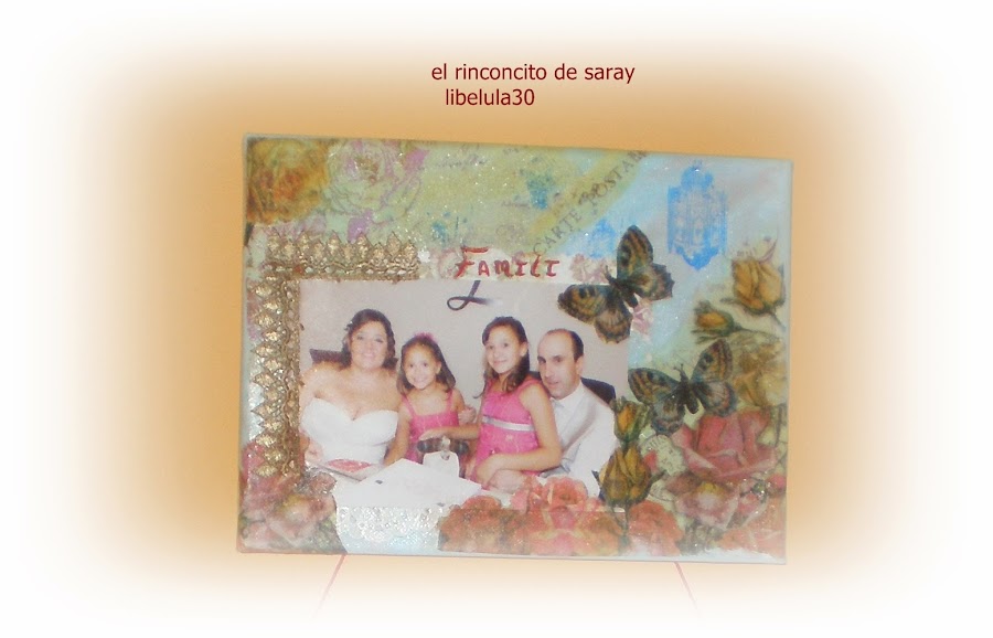 un cuadrito con una foto de la boda de mi hermana estilo escrap