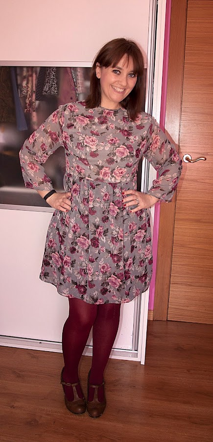 Bueno después de los días de ocio hoy vengo con la Primavera en modo ON, y os traigo un vestido de gasa con un estampado florar maravilloso un fondo gris con rosas en granate y rosa empolvado con un toque romántico para mi gusto exquisito.