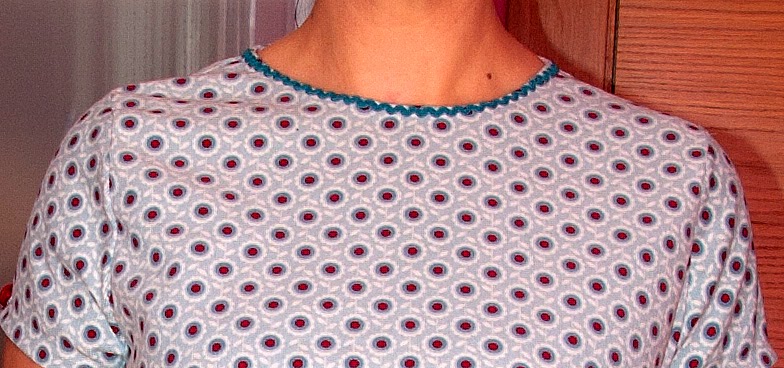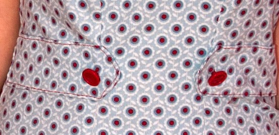 Y bajo el pecho le he puesto dos trabillas anchas con un botón rojo igual que el de las mangas.
