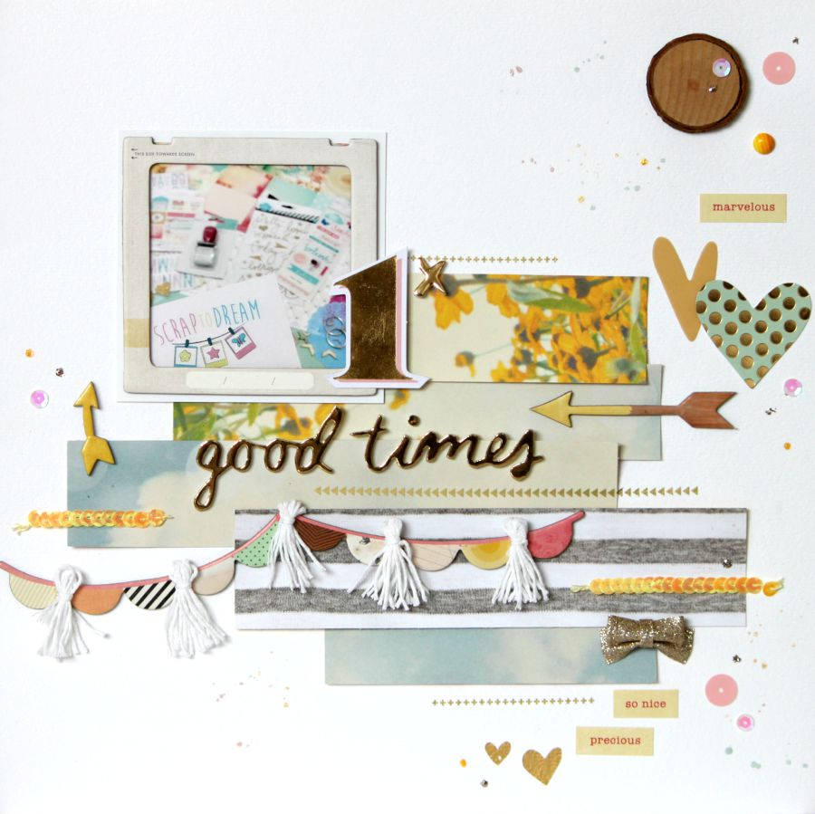 Todo el equipo ha creado un LO para felicitarlos y yo me he inspirado con la foto del primer kit que tuve y trabajé para ellos, todo este tiempo ha sido "Good Times", gracias chicos.