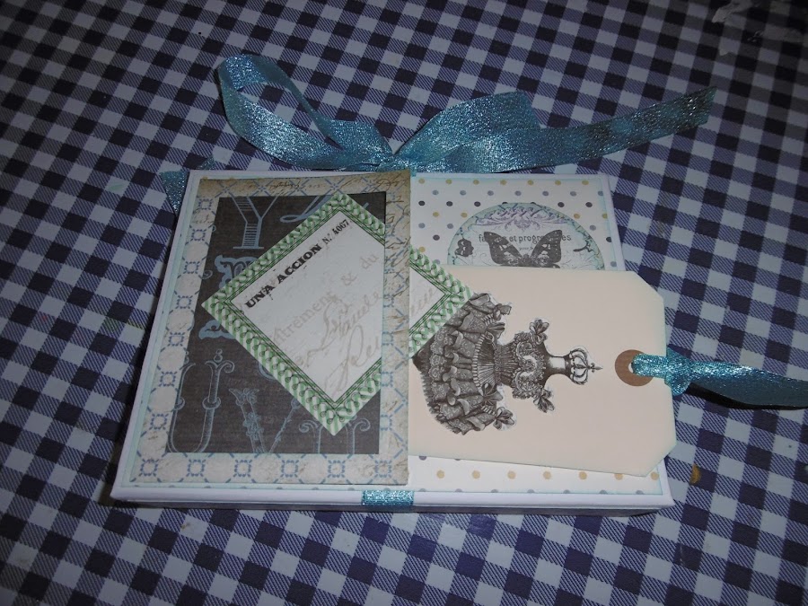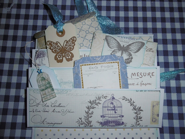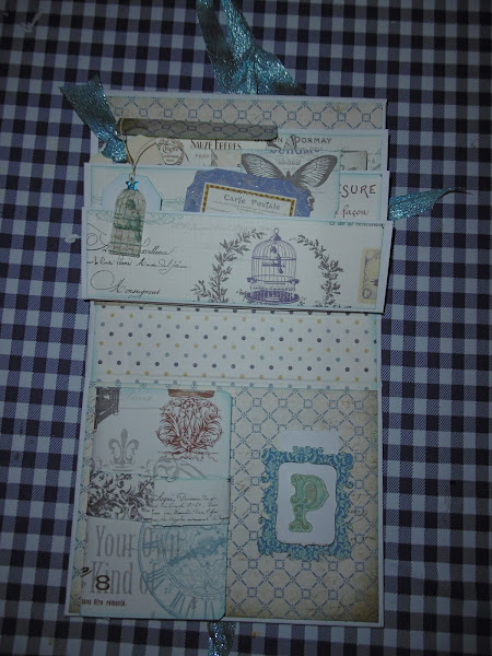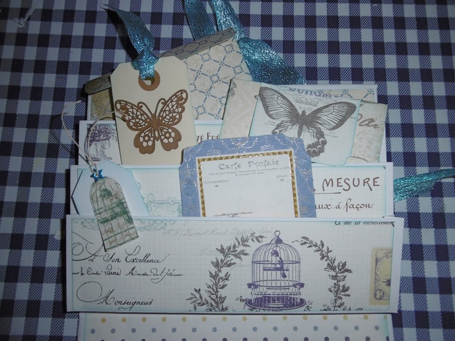 El archivador lo llene de adornos... unos tag, sobres, tarjetas.....ayudan a que quede decorado sin aporatr volumen extra.