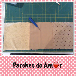 Esta medida la dividiremos en 3 partes iguales (recordemos que debemos dejar 1/2 cm de margen de costura por cada lado pero en el lado que hará de base dejarlo mas largo para cuando armemos la canasta. Me explico?