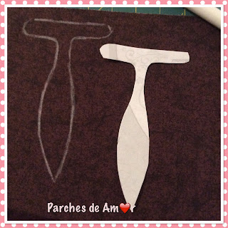 Seguimos? Transferimos el molde son ayuda de una tiza o lápiz blanco (para mejor visión) recortamos y ya esta listo para aplicar sobre el primer bloque de la izquierda de los tres que unimos recuerdan?