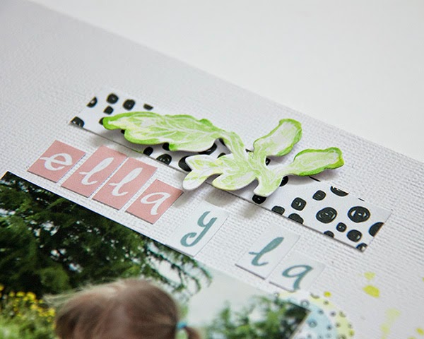 Al combinar papeles de Pirueta en tonos suaves con su papel en blanco y negro conseguí un contraste que seguro repetiré en otros diseños ¡me encanto!. También he utilizado sus alfabetos recortables en rosa y verde y pegatinas,combinado con adornos resist, acetato, alfabeto chipboard y unos toques de tinta neón amarilla.