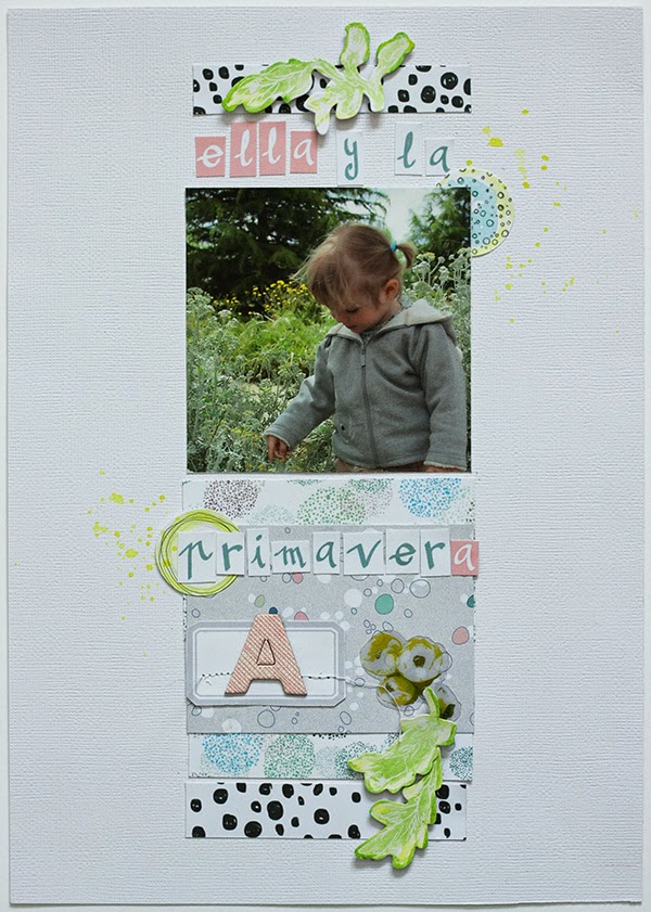 Junto a mis compañeras del DT lo hemos pasado genial con el desafío y te mostramos nuestros layouts para que tengas un punto de partida para inspirarte. Para mi diseño he utilizado los papeles de la colección Pirueta y una fotografía de mi hija en los primeros días de la primavera entre plantas llenas de brotes y flores: