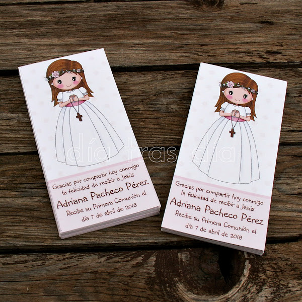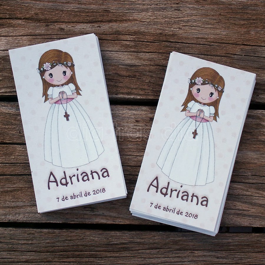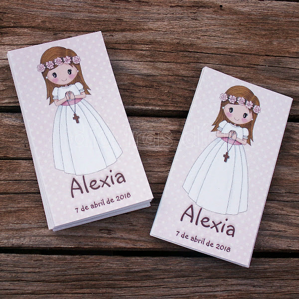Estas han sido las tarjetitas, que luego tanto Alexia como Adriana podrán guardar con mucho cariño como recuerdo de este día tan especial para ellas: